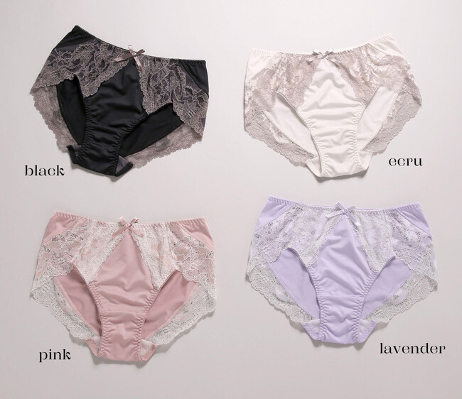 ブラック・エクリュ・ピンク・ラベンダーの4色展開で幅広い年齢の方にお選びいただけるカラーリング。トリンプ基準をクリアした工場のみで縫製を行っているので、品質・つけ心地ともに抜群です。