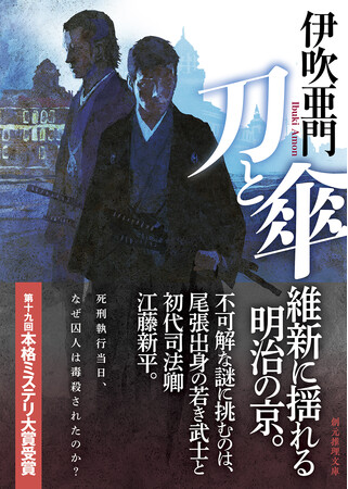 『刀と傘』の舞台は明治維新に揺れる京都。尾張藩の若き武士・鹿野師光(かのもろみつ)が後に日本の司法制度の礎を築いた初代司法卿・江藤新平と出会い、二人で数々の不可解な事件の謎に挑むストーリー。収録された五つの短編それぞれに謎解きの趣向が盛り込まれています。犯人当て、密室状況での仕掛け、倒叙形式での探偵と犯人の対峙などその趣向も様々。