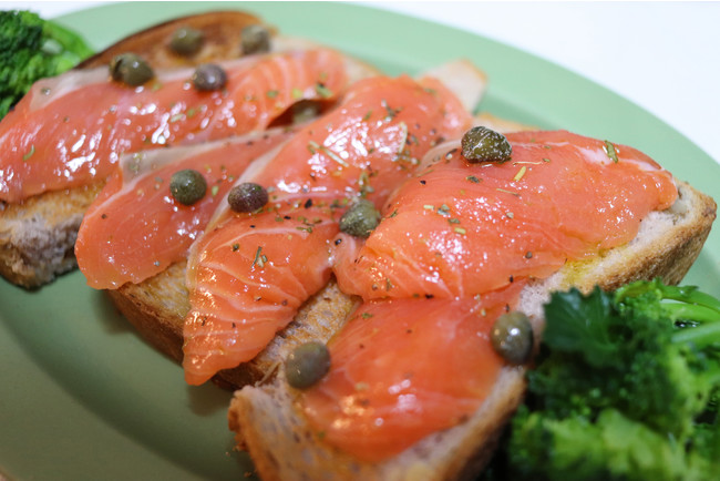 ・いつもの魚をグレードアップする例 鮭のオープンサンド焼きレタス柚子とともに