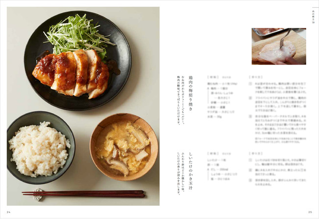 本書では、おうちで手作りごはんが食べたい方、4月から新生活をスタートした方に向けて、つくりやすくて簡単な和食の2品献立をご紹介しています。テーマは身体に優しい、ヘルシーな簡単和食の2品献立。なおかつ、ひとり分でもふたり分でも作りやすい食材と調味料です。