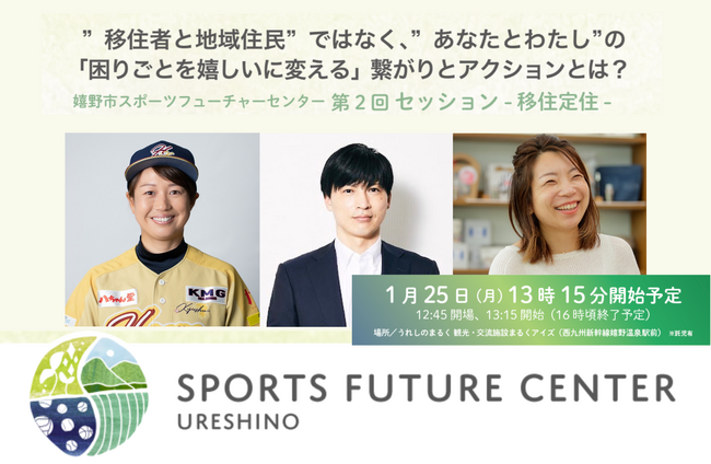 大阪府から佐賀県へ移住し、嬉野市地域おこし協力隊としてインターネットラジオや空き家の活用及び移住促進業務を担当している久野裕子さんに思いを伺いながら、川端友紀さん、増田誓志さんらアスリートとフューチャーセッションを実施。移住経験のあるアスリートが、嬉野市で移住を担当している地域おこし協力隊員や市民と「移住のリアル」や私たちができる「移住応援」などについて語り合います。