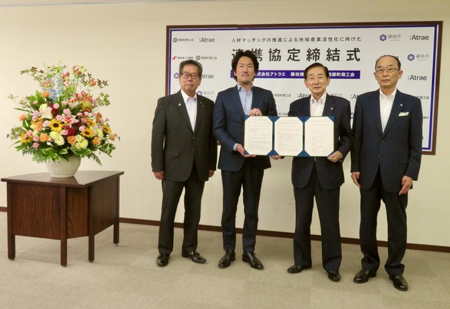 この度、株式会社アトラエ様、藤枝商工会議所様、岡部町商工会様 と、人材マッチングの推進による地域産業の活性化に向けた連携協定が締結できたことを、大変嬉しく思います。今後、株式会社アトラエ様をはじめ、藤枝商工会議所様、岡部町商工会様と連携により、本協定を実効性のある取組にして、本市産業の持続的な成長と競争力強化を図り、地域産業の活性化につなげてまいりますので、皆様のご協力をよろしくお願いいたします。