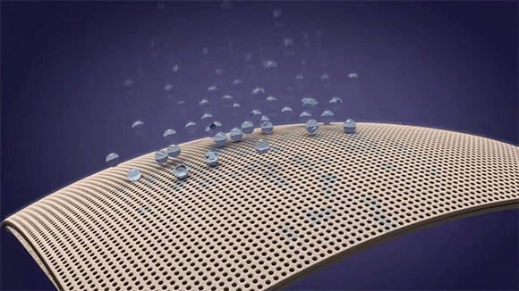 二層目の保護層はPS-360「ナノレベルの防水層」です。この防水層には水分子の1万分の1の通気孔が約10万個開いており、雨水の侵入を防ぎ、さらに防水性と吸湿性を実現します。