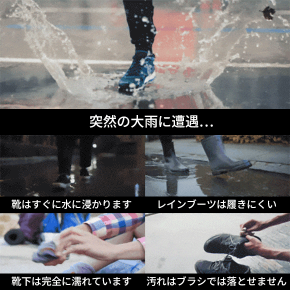 1、驚異の防水性能!豪雨や汚れから足をしっかり守り、安心感抜群。