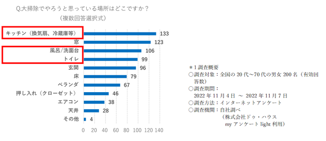 大掃除をしようと思う場所 1位「キッチン」&水回りが多い結果に
