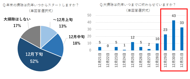12月下旬に大掃除を開始する人が過半数。終わらせる日は30日が最多。