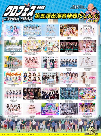 芸能界一のアイドル好きでありファンであるクロちゃん総合プロデュースの野外アイドルフェス「クロフェス2023 〜野外フェスでキュンからのバッキューン(ハート)だしん!〜」第5弾出演者として今回は一挙30組の追加出演者と各出演者の出演日を発表しました。