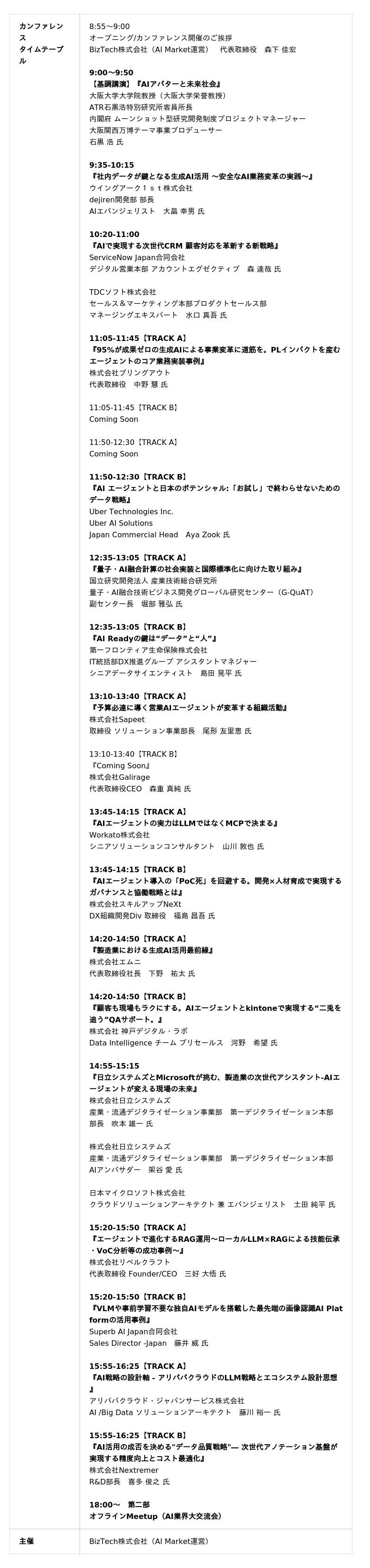 大阪大学栄誉教授 石黒 浩氏、ウイングアーク1st、ServiceNow Japan、TDCソフト、産総研、アリババクラウドなど国内外のAIトップランナーが多数登壇。国内最大級のAIカンファレンス!
