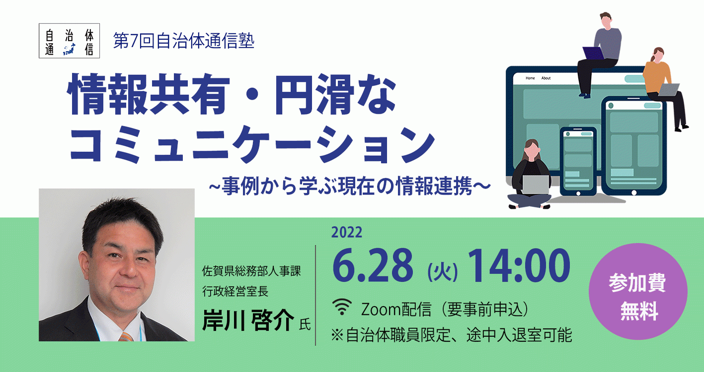 【自治体職員限定】第7回自治体通信塾「情報共有・円滑なコミュニケーション〜事例から学ぶ現在の情報連携〜」を開催します【2022年6月28日(火)】