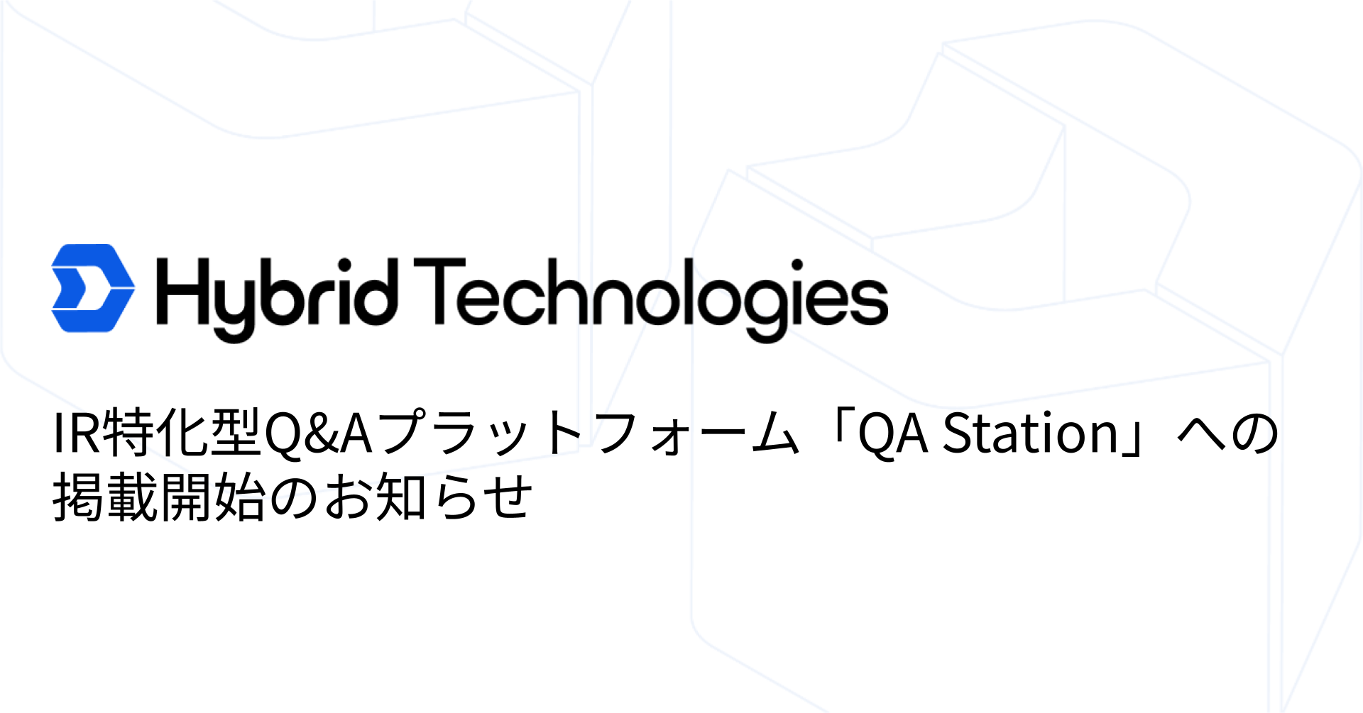 IR特化型Q&Aプラットフォーム「QA Station」への掲載開始のお知らせ