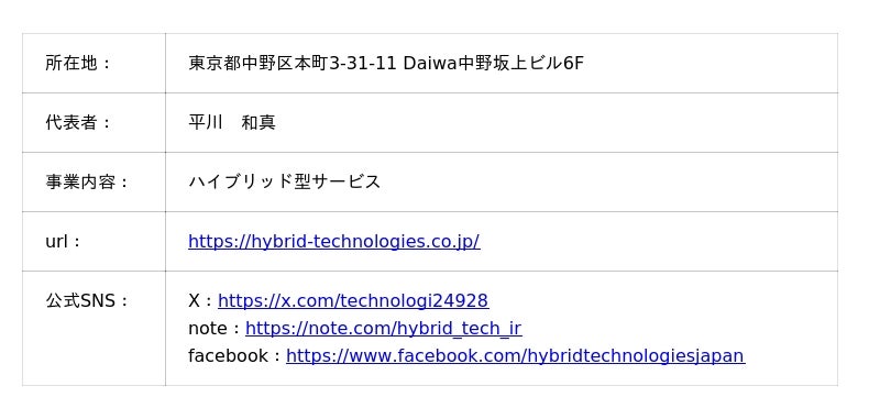 【株式会社ハイブリッドテクノロジーズ 概要】
