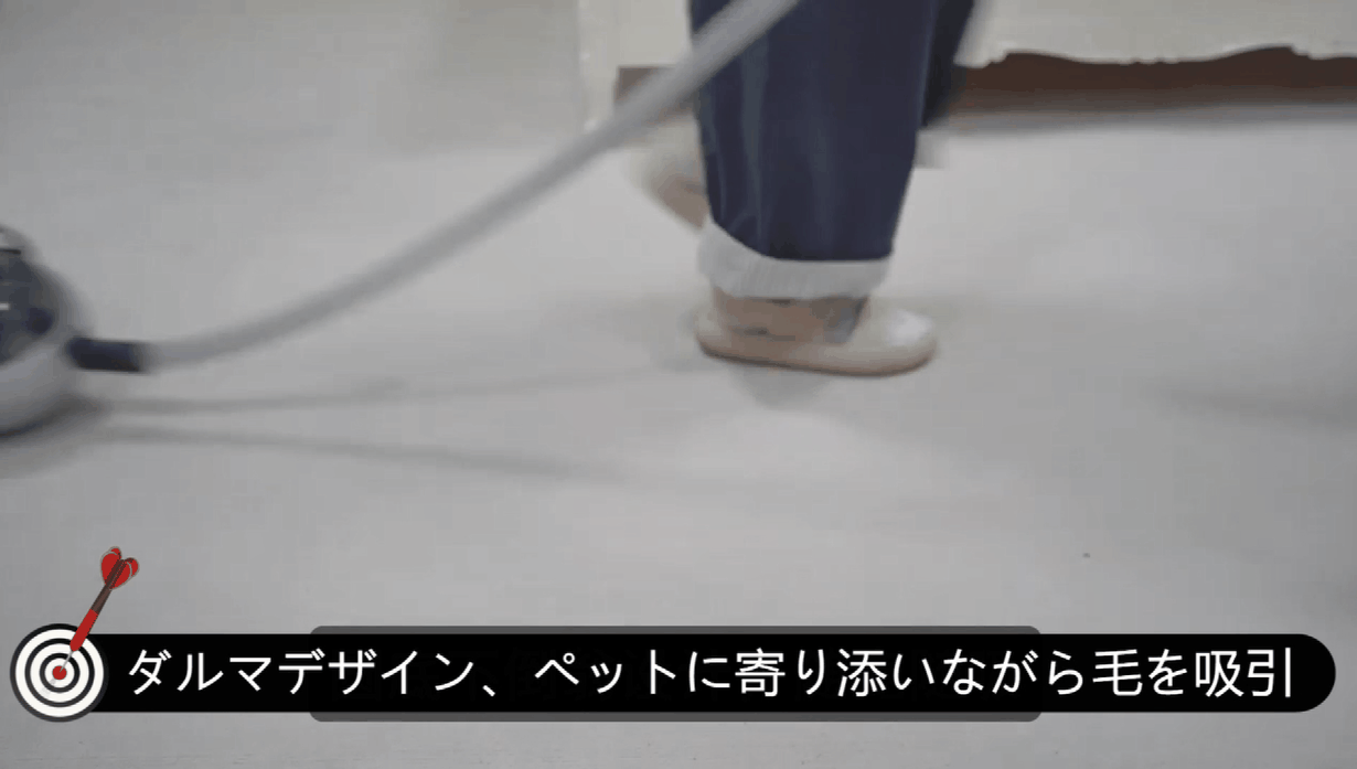 ペットを怯えさせないよう、十分な吸引力を保ちながら、振動音をできる限り小さく抑えた音量設計がされています。