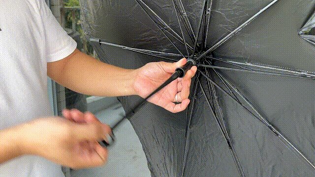 また、精密な10本骨傘フレームを採用しており、芯が強く、フロントギアでしっかりと支えられるため、手動での調整が不要です。