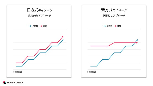 両社がダイナミックプライシングサービスを提供開始したのは2020年12月です。そこから約2年間、全国の高速バス事業者様にお使いいただき、プライシングに必要なデータが蓄積されてきました。これにより、予約の増加ペースを検知して運賃のアップダウンを調整する従来の“反応的なアプローチ”から、期待される需要に合わせて予め最善の運賃を設定する“予測的なアプローチ”への移行が可能になりました。