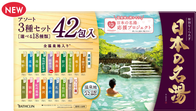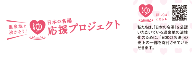 売上げの一部をご公認いただいている温泉地に寄付する『「日本の名湯」応援プロジェクト』の対象商品です。