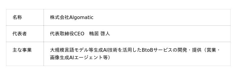 事業内容: 大規模言語モデル等生成AI技術を活用した、サービスの開発・提供