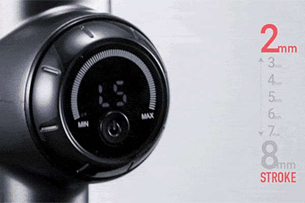 ストローク6mmは脊椎関節、腰方形筋などの腰部の筋肉、および下腿部の筋群や末梢神経周囲に適しています。ストローク7mm以上は臀部や大腿深層筋に特に有効です。