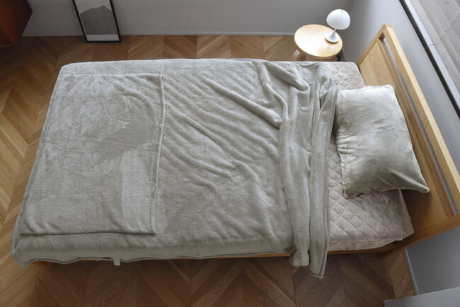 毛布と布団を重ね掛けしていると、寝ている間に蹴飛ばして毛布だけベッドの下に落ちていた…なんて経験のある方にもおすすめ。