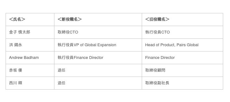この度、アジアにおけるPairsのさらなる事業拡大とオンラインデーティング市場の開拓を見据え、グローバルでの経験豊かな2名を新たに経営メンバーとして選任。また、今回のタイミングで共同創業者である、赤坂と西川は退任する運びとなりました。エウレカでは引き続き、ミッション「すべての人が、人生の可能性を拓いていける世界をつくる。」の実現に向けて取り組んでまいります。