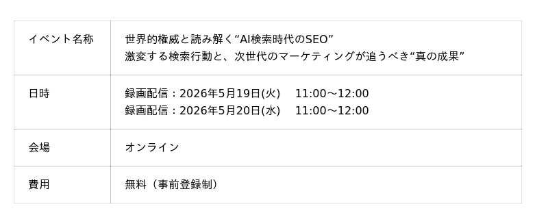 【再放送決定】世界的権威と読み解くAI時代のSEO戦略。ゼロクリック時代への対応と「ストイックな対談」が反響を呼んだ特別セミナーをアンコール配信