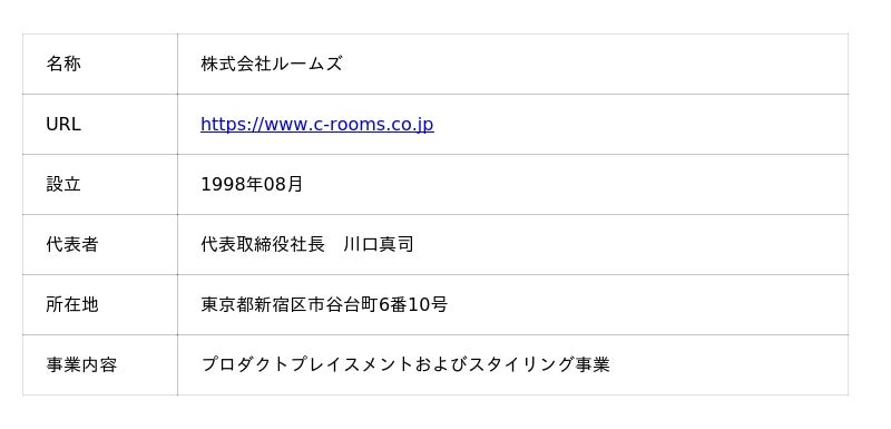 株式会社ルームズ(プロダクトプレイスメントおよびスタイリング事業)