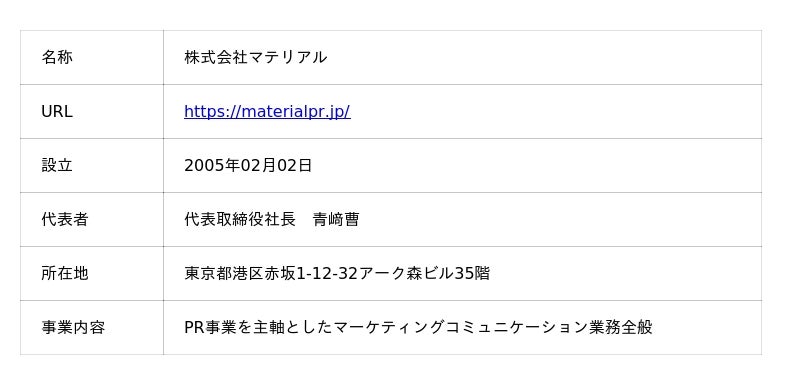 株式会社マテリアル(PR 事業を主としたマーケティングコミュニケーション業務全般)
