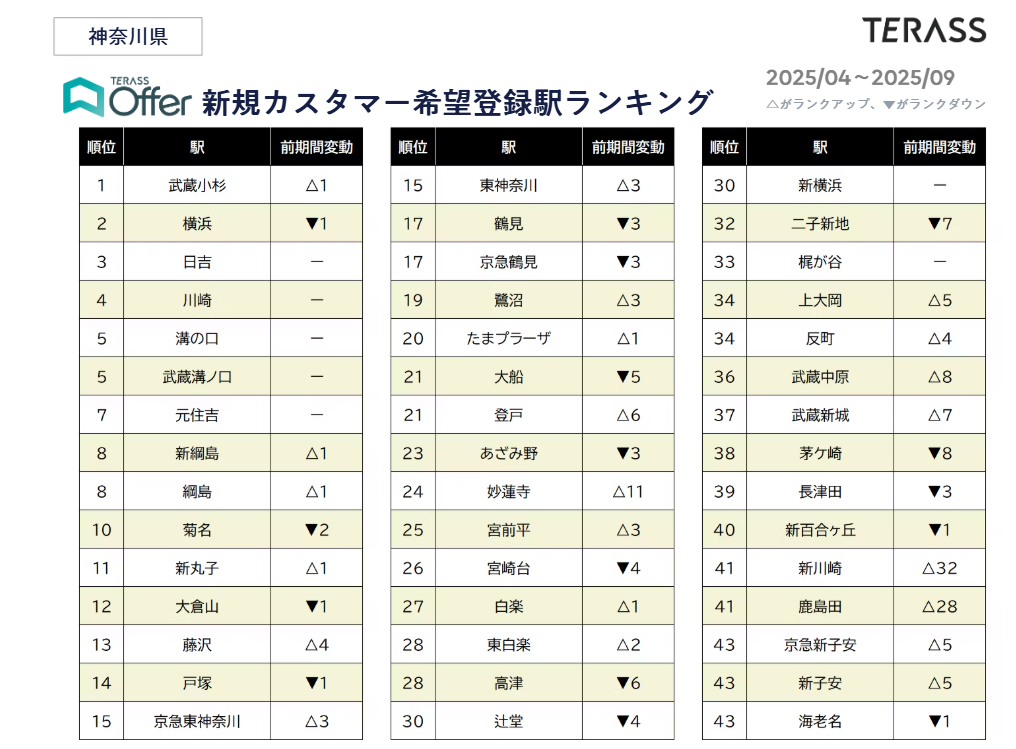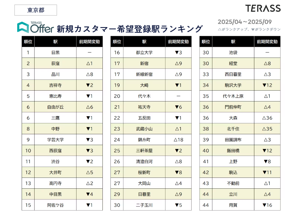 約4.8万人が使う家探しサイト「Terass Offer」に基づく人気駅ランキング