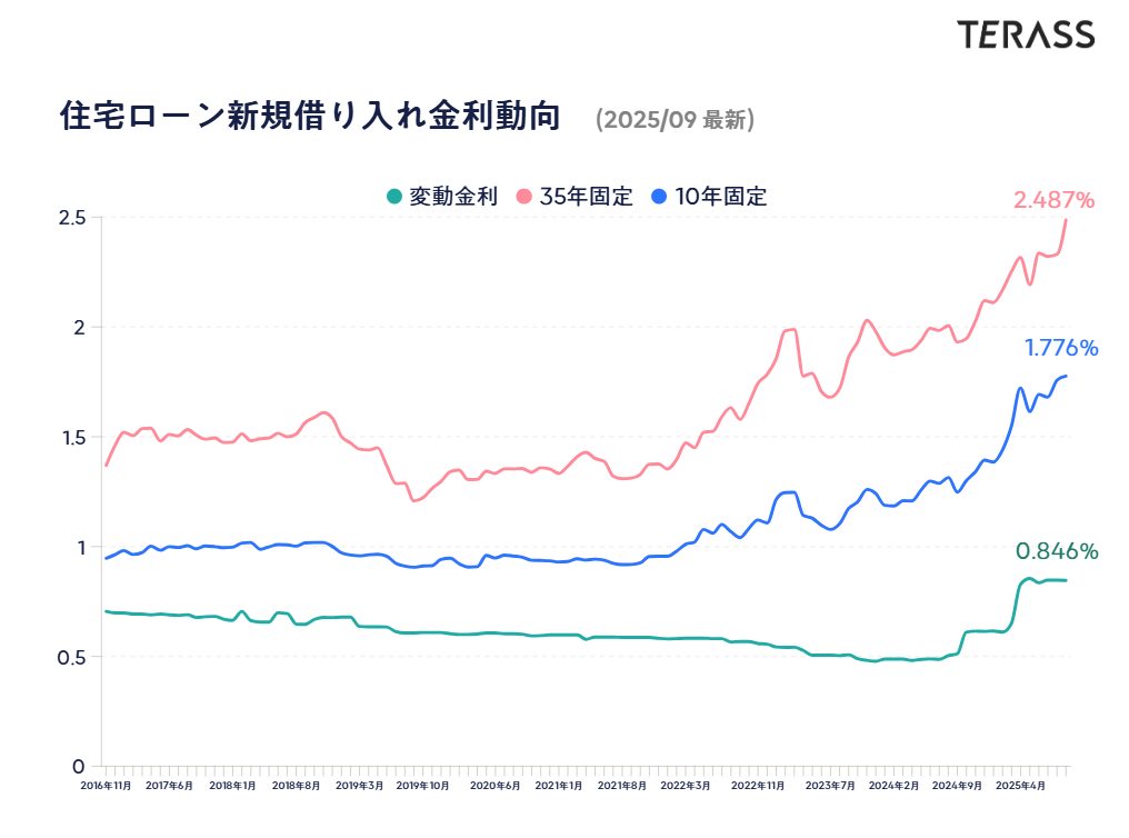 一方で、固定金利も大きく上昇を続けており、変動金利の金利差は引き続き大きい。
