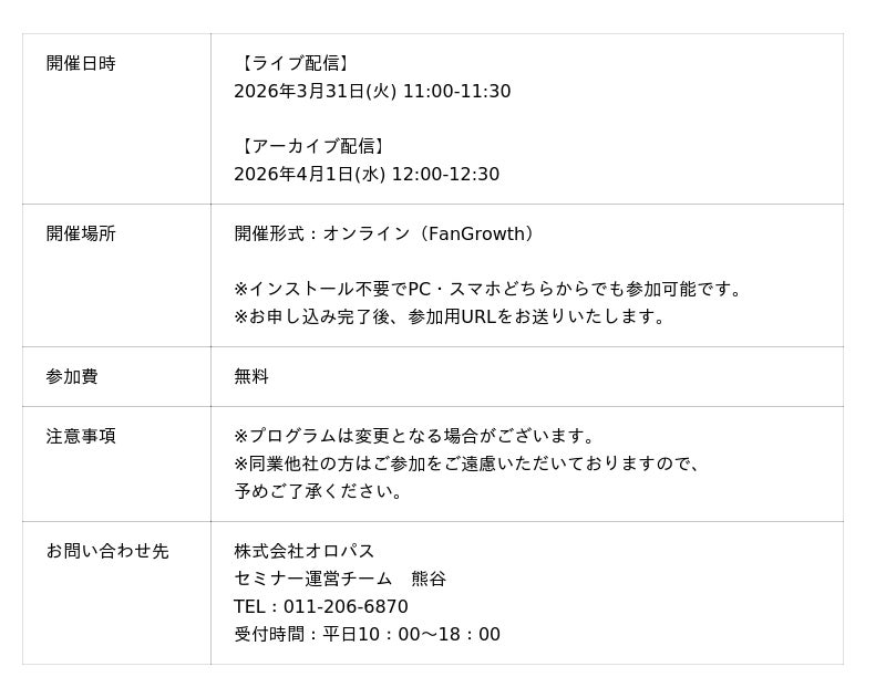 [表: https://prtimes.jp/data/corp/75553/table/112_1_ad7811abf118e09b8a11e7702337be0c.jpg?v=202603251045 ]