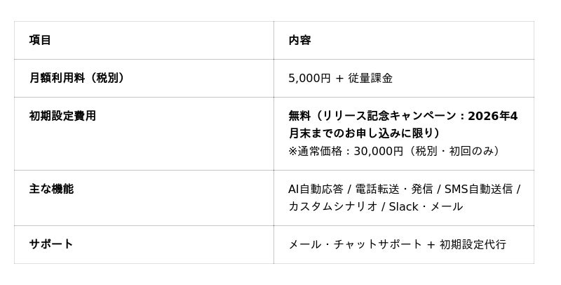 サービス開始を記念し、より多くの店舗様にAI電話受付の効果を体感いただくため、以下の通りキャンペーンを実施いたします。
