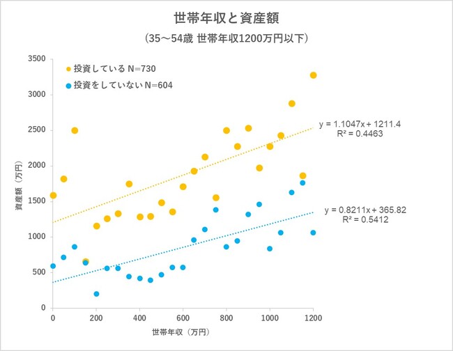 世帯年収が同じでも、投資の有無によって資産額に大きな差が出る傾向に