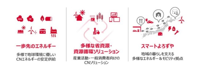 出光興産は2050年カーボンニュートラル社会の実現に向け、2030年ビジョン「責任ある変革者」、2050年ビジョン「変革をカタチに」を掲げています。昨年11月に発表した中期経営計画(対象年度:2023〜2025年度)https://www.idemitsu.com/jp/company/managementplan/index.html では、下記の「3つの事業領域」の社会実装を通して「人々の暮らしを支える責任」と「未来の地球環境を守る責任」を果たしていくことを表明しました。