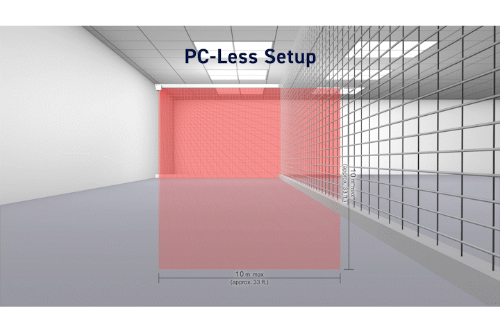 本製品は対象物の「大きさ」「センサーからの距離」「速度」を識別できる、屋内用の高性能レーザースキャンセンサーで、通常モード時10m×10mの検知エリアを一台で構成します。これまでのREDSCANシリーズで必要だった複雑な施工手順や調整を極力簡易化することで、施工性を大幅に向上させました。