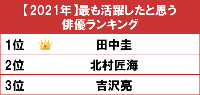 gooランキング(グーランキング)は、世の中のあらゆる「こと・もの」をランキング化する国内最大級のランキング情報サイトです。今回は、2021年にドラマや映画などで活躍した俳優をテーマに、多くの人が最も活躍したと思っている俳優が誰なのかについて調査・ランキング化しました。