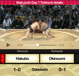 また、取組ムービーは平成22年5月場所まで振り返る事ができ、見逃してしまった本日の取組はもちろん、話題を呼んだ過去の 取組まで、スマホでいつでもどこでも相撲観戦ができます。