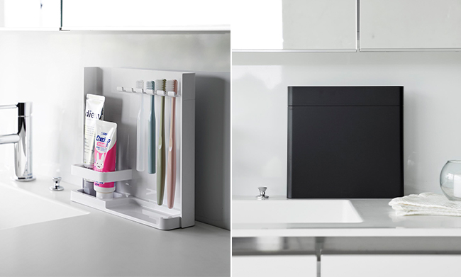 サッと裏返すだけで隠したい時すぐに隠せる歯ブラシ&チューブスタンド。