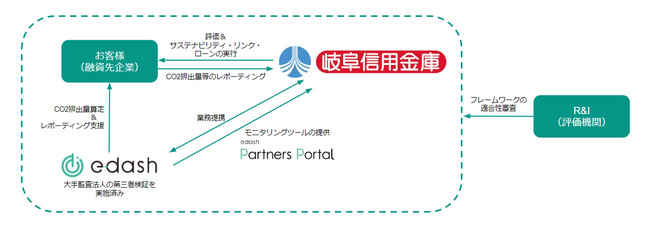 上記状況を受け、岐阜信用金庫は2023年3月、「e-dash」によるCO2排出量等のモニタリング体制を組み込んだ中小企業向けSLLのフレームワーク「ぎふしんSLL」を構築しました。