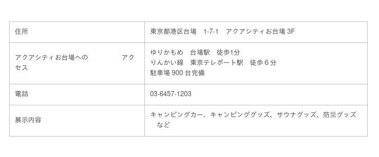 【GRAN CAMPER Tokyo 概要】