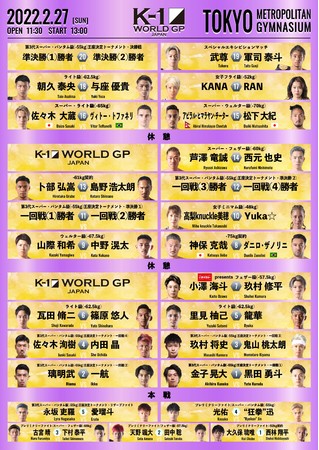 2 月 27 日(土)「K-1 WORLD GP 2022 JAPAN」東京体育館大会