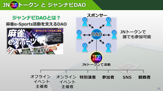 ジャンナビDAO(分散型の組織)によって、「麻雀を世界的なスポーツとして普及させる活動」を、