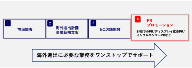 さらには、現地で普及率の高いSNSでのアカウント開設や顧客対応、販促企画、広告運用、インフルエンサー企画などを行うSNS支援も展開しており、現地にいち早く根付くための支援を実施します。