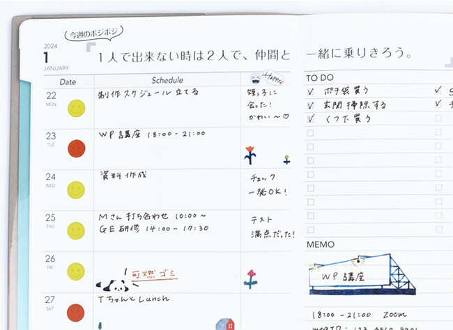 <新発売>毎日が楽しく、前向きになる手帳「POZITE」販売開始。200件の公募から選ばれたポジティブワード58個を掲載。