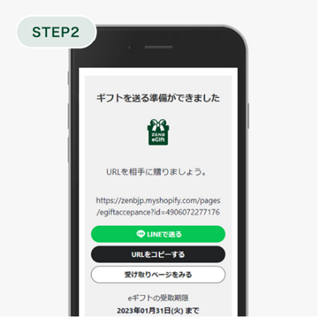 受け取りURLを贈りたい相手のLINEやメールに送付。