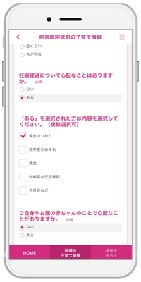 阿武町は『母子モ』の追加機能である「質問票サービス」を伴走型支援事業に活用し、妊娠届出アンケート、妊娠8カ月アンケート、出生届時アンケートが、『母子モ』を通じて時間や場所を問わず簡単に提出できるようになります。