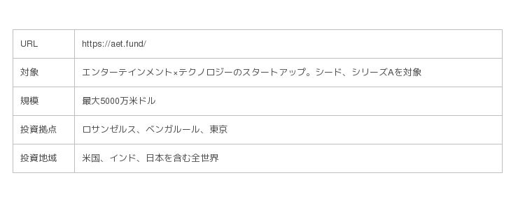 AET Fundは今後、AR/VRだけでなく、ライブストリーミングサービスやメディア、Eコマースなど、幅広いエンターテインメントに投資をしてまいります。また、米国においては、Betaworksをはじめとするベンチャーキャピタルとの連携を通じ、優良なスタートアップへの投資を加速させてまいります。