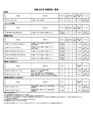 詳細はページ下部の「白鶴2023年 春夏商品一覧表」をご覧ください。
