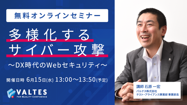 ソフトウェアのテスト・品質向上支援サービスを提供するバルテス株式会社(本社:大阪市西区、東京都千代田区、代表取締役社長:田中 真史、以下バルテス)は、2022年6月15日(水)に無料Webセミナー『多様化するサイバー攻撃 〜DX時代のWebセキュリティ〜』を開催いたします。