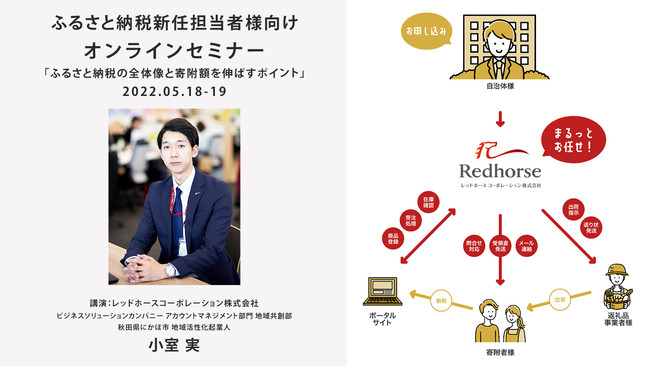 地方創生事業を主力事業とするレッドホースコーポレーション株式会社(本社:東京都墨田区、代表執行役グループCOO:宮本隆温、以下:当社)は、2022年5月17日、18日の両日、全国の自治体のふるさと納税業務に関する新任担当者に向けたのオンラインセミナーを開催しました。