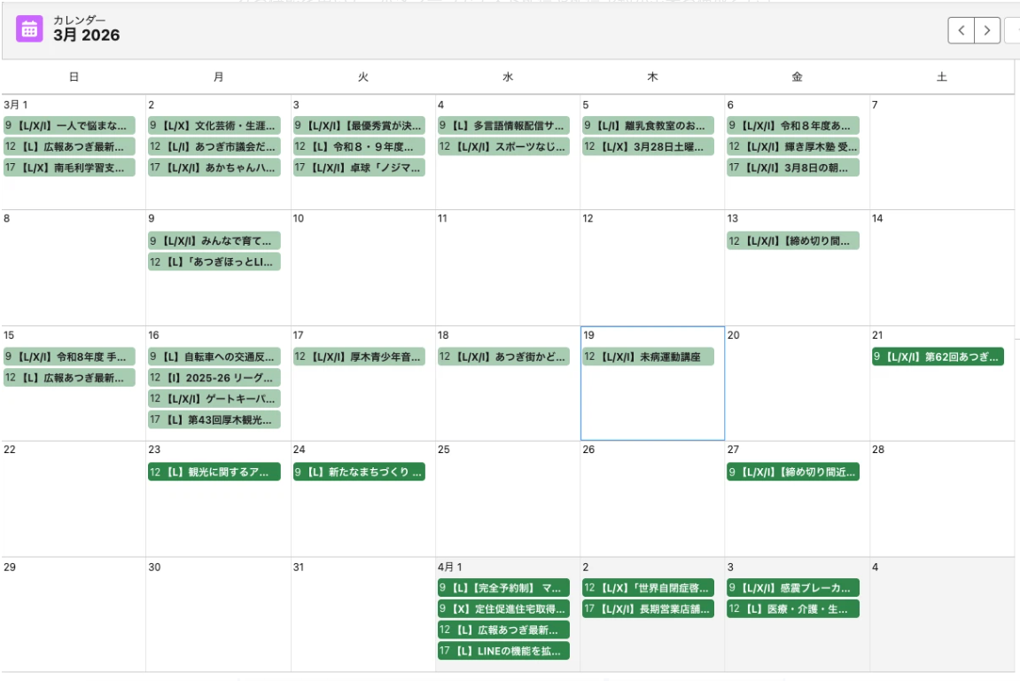 あわせて、庁内の配信業務の流れも見直しました。庁内からの配信依頼は一元管理し、配信予定をカレンダーで視覚的に把握。さらに管理画面上のボタンから簡単に配信予約ができる仕組みとし、計画的・効率的に運用できる体制を目指しています。