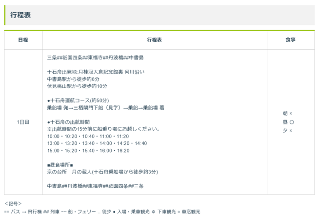 十石舟の出航時間 ※ツアー代金に料金含まれております。